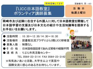 『LICC日本語教室』ボランティア講師募集≪常-43まちびとバンク≫