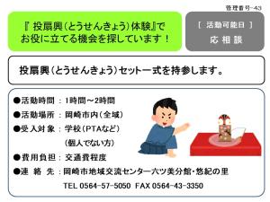 『 投扇興(とうせんきょう)体験』で お役に立てる機会を探しています!≪管理番号-43まちびとステージ≫
