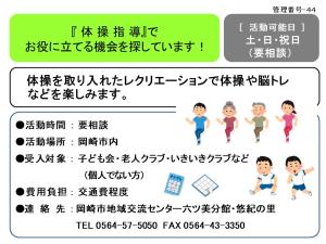 『 体操指導』で お役に立てる機会を探しています!≪管理番号-44まちびとステージ≫