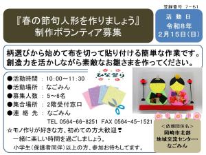 『春の節句人形を作りましょう』 制作ボランティア募集≪7-51まちびとバンク≫