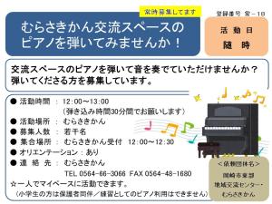 交流スペースのピアノを弾いて下さる方を募集してます -