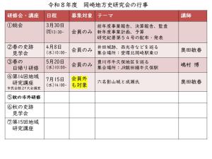 令和8年2月15日発行の岡崎地方史研究会便りで案内されています、新年度前半の行事を掲載します。