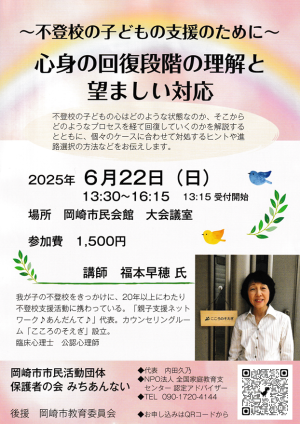 講演会テーマ「~不登校の子どもの支援のために~心身の回復段階の理解と望ましい対応」 京都を拠点に20...